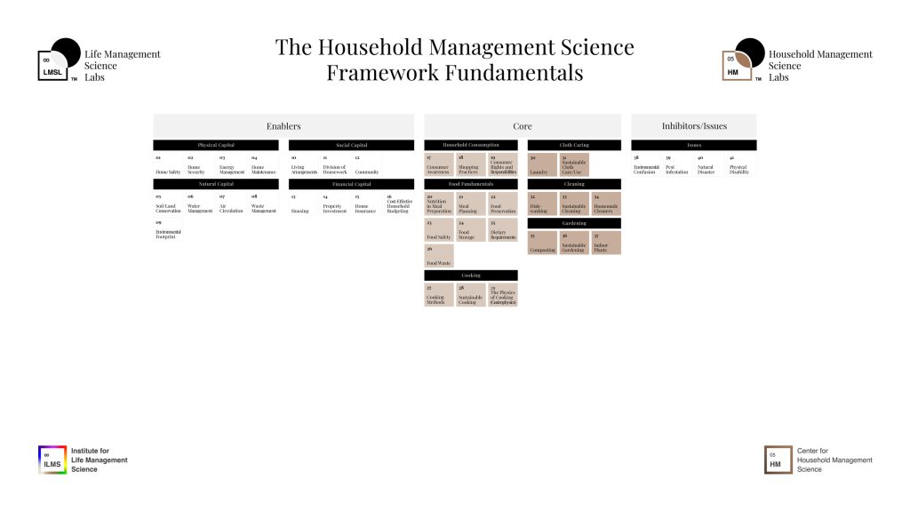 The Household Management Science Framework Fundamentals consists of 11 domains and 41 elements, drawing its strength from extensive research and studies performed by numerous experts. We cordially invite you to immerse yourself in the course materials through a captivating audio-visual narrative.